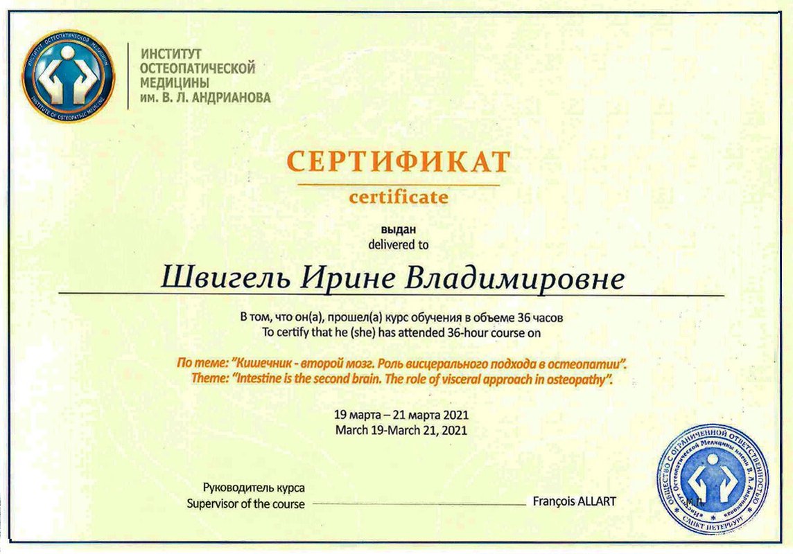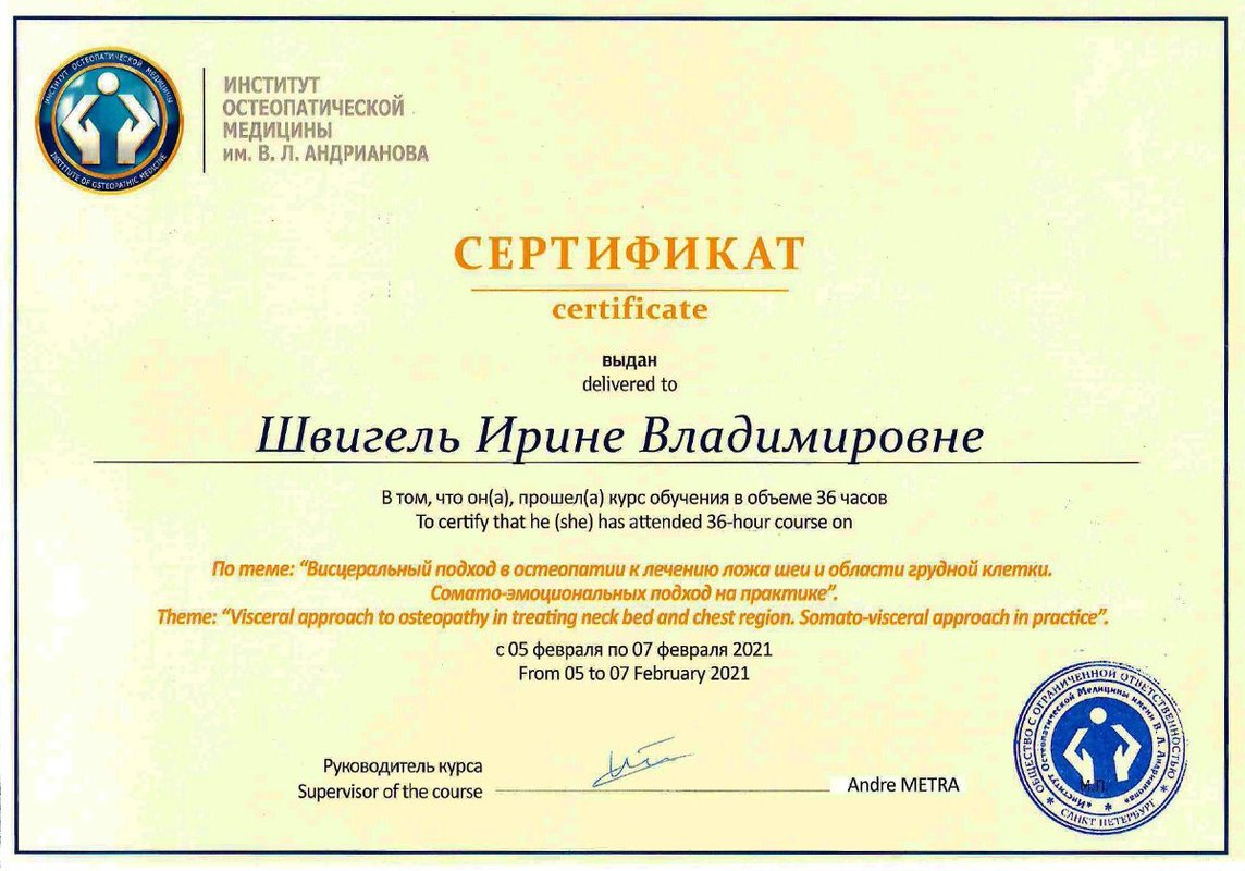 Мне понравилась работа врача-остеопата, его профессиональный подход и быстрый результат. Я почувствовала, как оперативно он принимает решения и помогает, эффект от сеанса наступил очень быстро. Михаил Николаевич имеет большой опыт и стаж, он настоящий мастер своего дела и человек, который отлично знает свою работу.