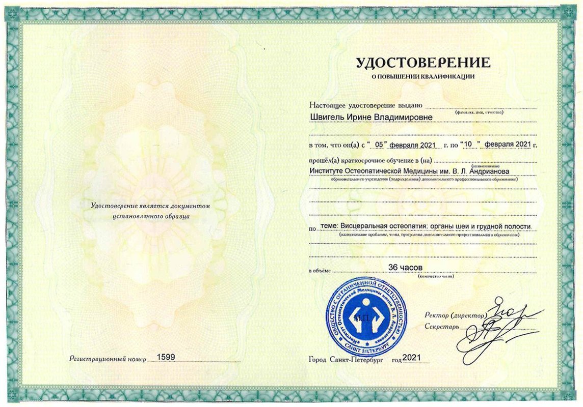 Анна Анатольевна отлично выполнила свою работу! После сеанса остеопатии почувствовала заметное облегчение, получила действительно профессиональный и корректный подход.