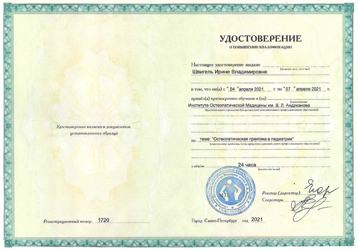 Людмила Михайловна Ладоша установила отличный контакт с моим ребенком, что для меня очень важно. Вижу реальные улучшения в состоянии ребенка, а это главное, что меня интересует. Мой малыш с удовольствием идет на приемы, что говорит о доверии к специалисту и хорошем взаимопонимании. На каждом сеансе врач обязательно беседует с нами, внимательно осматривает ребенка и выполняет остеопатические процедуры с деликатным подходом к детскому организму. Получили конкретные указания по дальнейшему лечению: повторный визит назначен через 2,5 месяца, необходимо обеспечить покой после процедур и добавить занятия плаванием для усиления терапевтического эффекта.